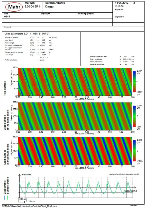 测量流程清晰高效:先对零件完成≤1μm 精度的调心调平,再沿轴线方向扫描,在 360° 圆周上均匀采集 72 条粗糙度轮廓线,通过马尔专业扭纹分析软件,自动完成导程角、导程深度等核心参数的计算与结果输出,全程减少人为误差,保障测量一致性。